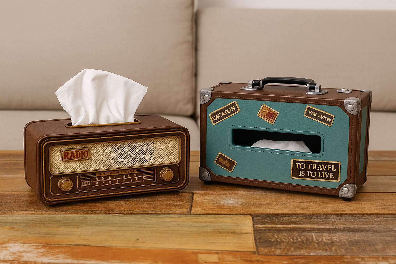 This eye-catching tissue box is designed to look like a classic vintage radio. It's the perfect combination of function and flair, ideal for anyone who loves a retro aesthetic with modern practicality.